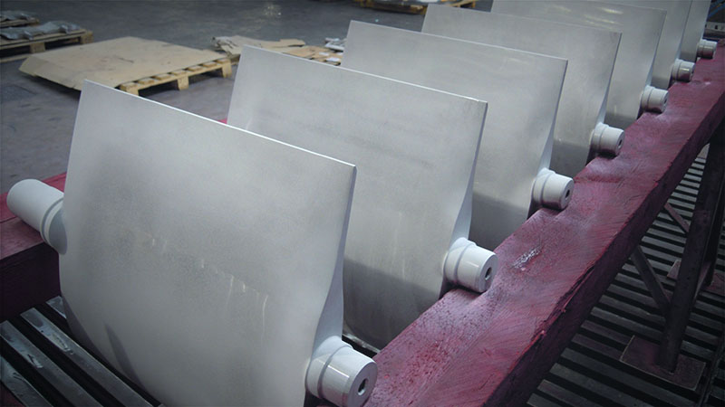 All’occorrenza possiamo fornire turbine idrauliche con rivestimento superficiale (carburo di tungsteno) che aumenta in maniera considerevole la durezza superficiale delle parti soggette ad usura.